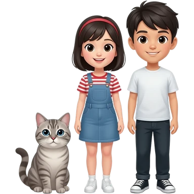 asian girl and asian boy with american shorthair gray tabby cat and ragdoll emoji