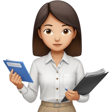 Asian girl accountant filing through financial papers emoji