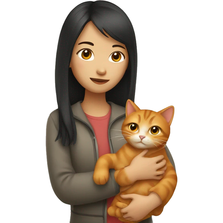 asian girl with black brown hair with bangs snuggle ginger cat emoji emoji