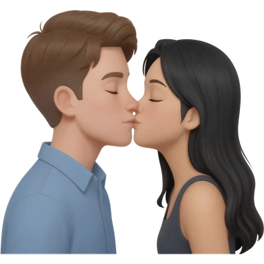 black hair asian girl kissing black hair mixed race man with a clean hair cut emoji