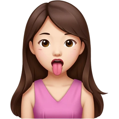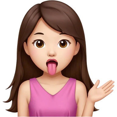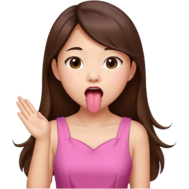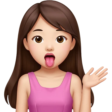 asian girl with long brown hair and fair skin wearing pink dress sticking tongue out emoji