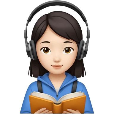 Asian girl with headphones reading book emoji