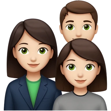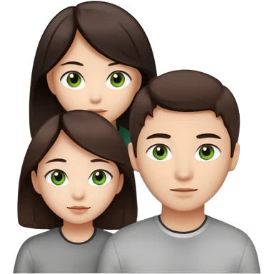 An Asian girl with brown eyes and dark brown hair, with her white boyfriend who has green eyes and light brown hair. emoji
