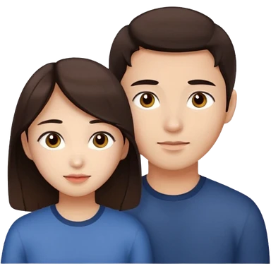 asian girl with brown eyes and dark brown hair, with her white boyfriend that has hazel eyes and light brown hair emoji