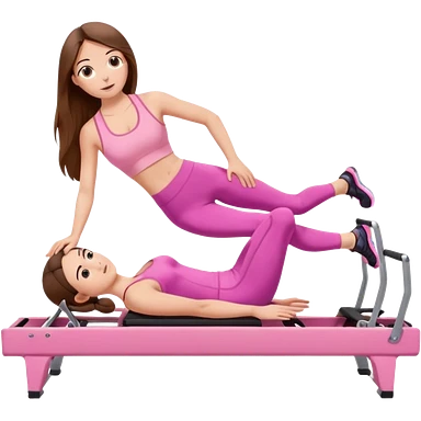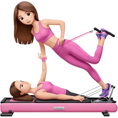 White skin girl with brown hair and brown eyes doing Pilates in a pink workout set on a Pilates machine emoji