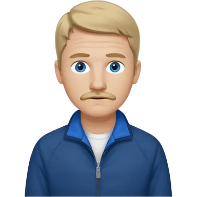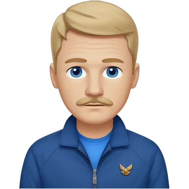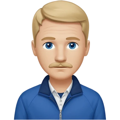 Coach Heider from Mysterious Skin with blue eyes, dark blonde hair and thin mustache, dark blue shirt, white jacket emoji