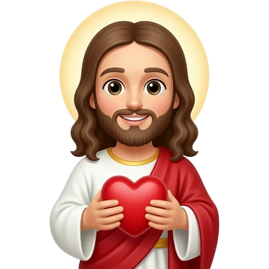 Brown Jesus holding a red heart emoji
