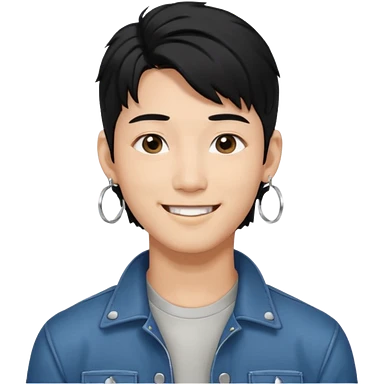 asian male with a black middle part with a kpop mullet and silver hoop earrings emoji | AI Emoji Generator