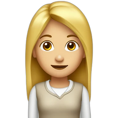 une fille avec de long cheveux noir lisse , des yeux marron , et avec des lunette (en forme de carrer un peu déformé) assez grosse comparer a ça tête , portant un pull blanc emoji