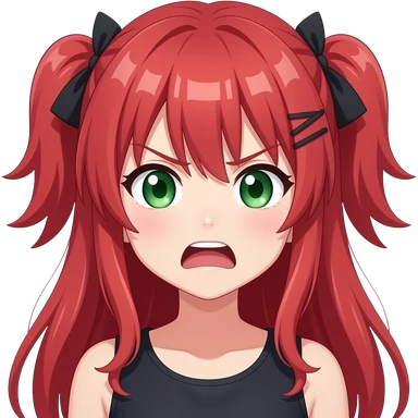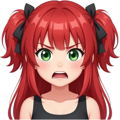 anime girl mad expression red hair green eyes emoji