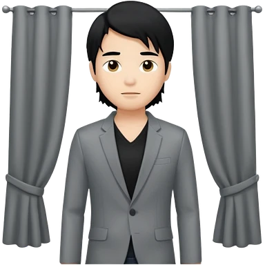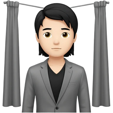 asian young man with long curtains style black hair in grey blazer and black t-shirt emoji