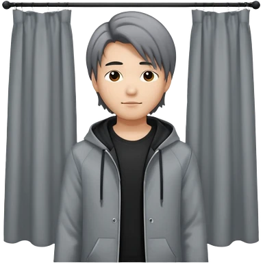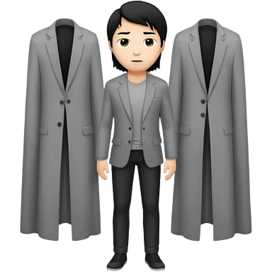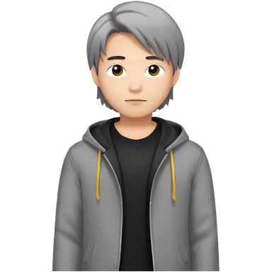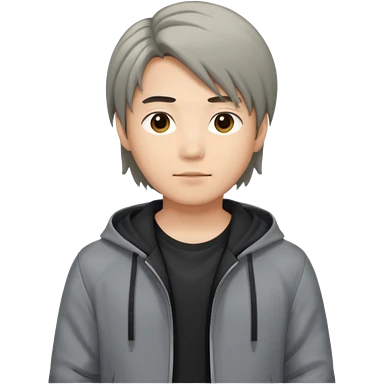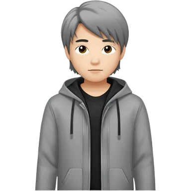 asian young man with long curtains style hair in grey jacket and black t-shirt emoji