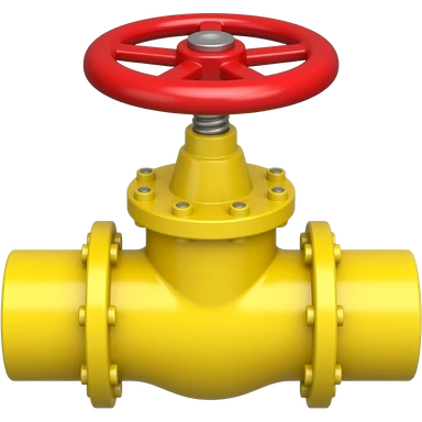 narrow horizontal yellow pipeline with red valve on top emoji