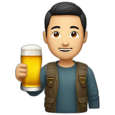 asian with beer emoji