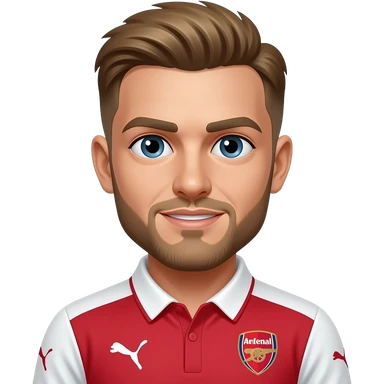 man mid 30 age arsenal shirt glasses short brown hair arms up emoji