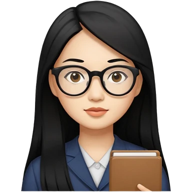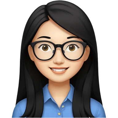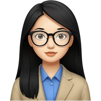 30 yr old asian woman, straight thick long black hair, big black glasses, side part emoji