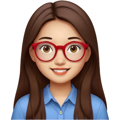 20 yr old asian woman, straight thick long brown hair, middle part, big red glasses, brown eyes, casual shirt emoji