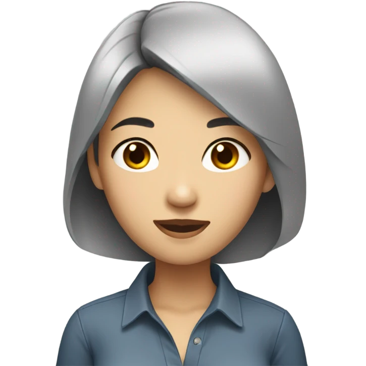 Asian woman with shoulder length black hair smiling business casual shirt emoji