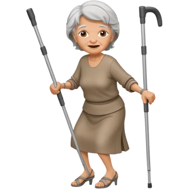 old woman dancing with crutches emoji
