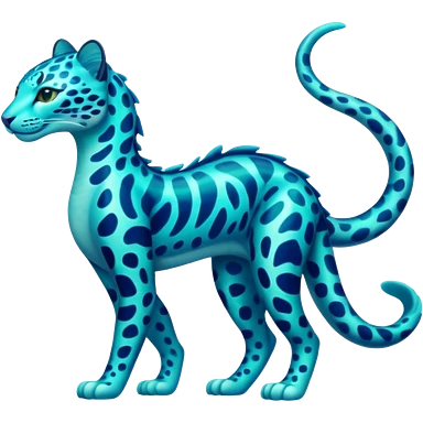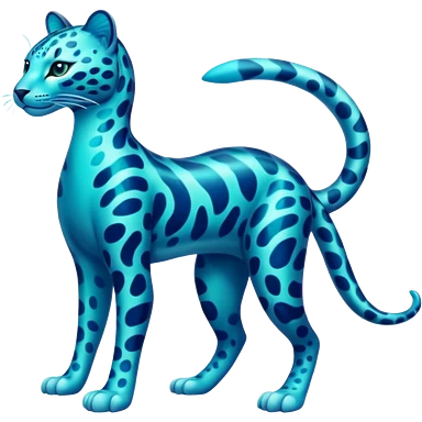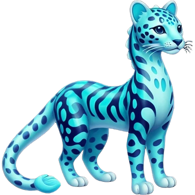 Bioluminescent Neon-Cyan Ripple-Patterned Soft-Scaled Aquatic Fantastical Liepard-Amaura-Manokit-fusion creature (full body) emoji