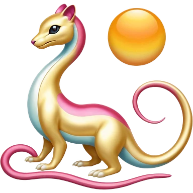 Shiny Pearl-Gold Sunset-Tinted Luxurious Elegant Smooth Milotic-Liepard-hybrid-Fakémon-creature (full body) emoji