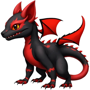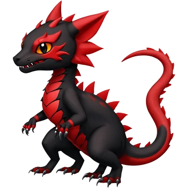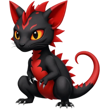Cherry-Red and Jet-Black Fierce Fiery Mohawked Gothic Salandit-Litten-Torracat-hybrid-creature (full body) emoji