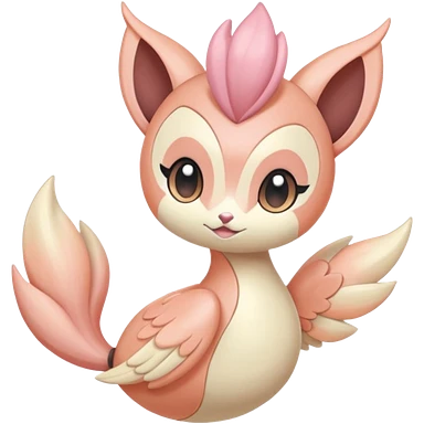 Pastel Pink-Peach Soft-Cream Rosy-Glossed Cute Round Meloetta-Trico-hybrid-animal-creature (full body) emoji