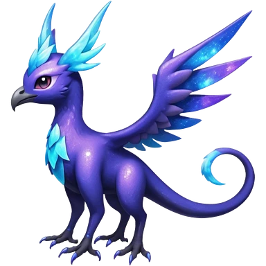 Starlit Glimmer-Blue Galaxy-Haloed Luminous Astral Feathered Noivern-Lunala-hybrid-creature (full body) emoji