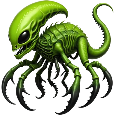 Toxic Chartreuse-Green Slime-Glossed Acid-Patterned Venom-Duskull-Xenomorph-hybrid-creature (full body) emoji