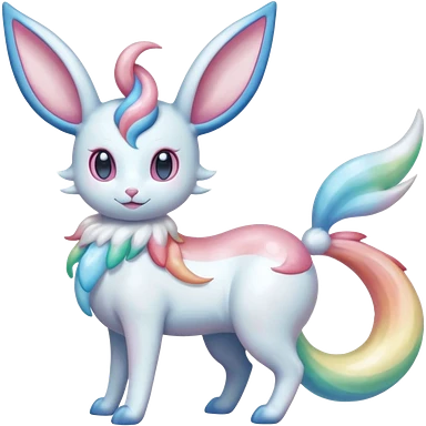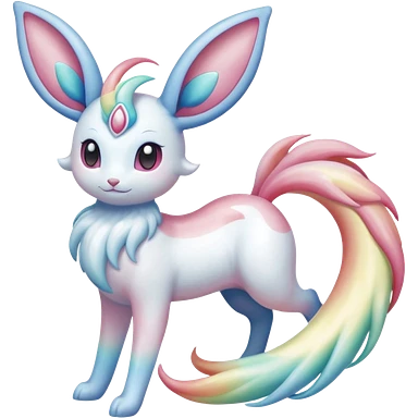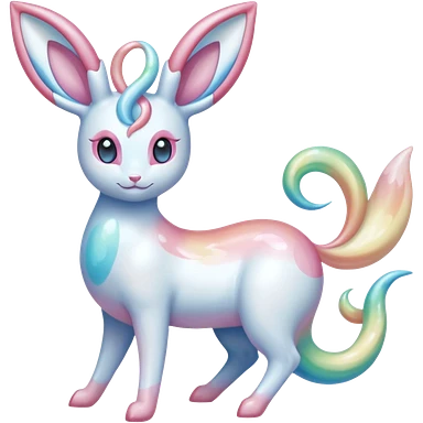 Pearlescent Milky-White Opalescent Rainbow-Tinted Soft-Glowing Celestial Sylveon-Milotic-Cresselia-Fakémon-creature (full body) emoji