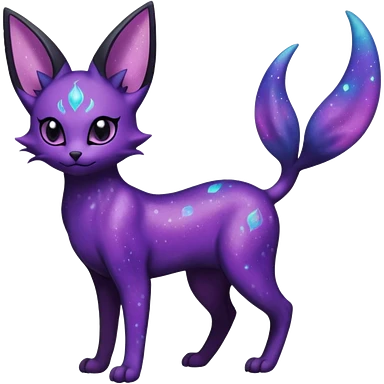 Obsidian Black Iridescent Deep-Violet Cosmic-Speckled Nebula-Marked Espeon-Noibat-Purrloin-hybrid-creature (full body) emoji