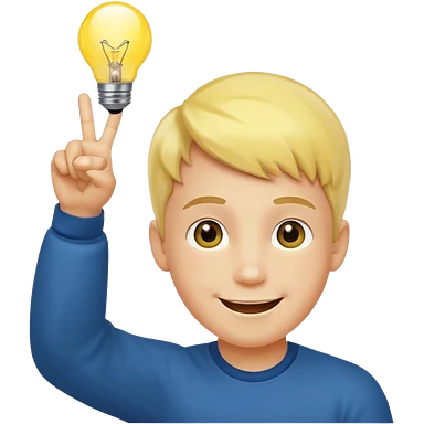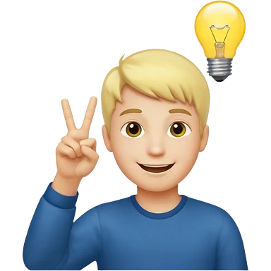 A boy with smily face with victory sign and bulb is glowing above face emoji
