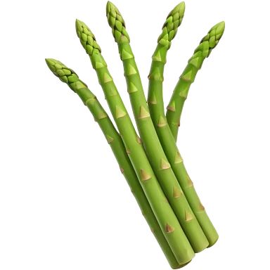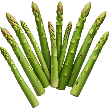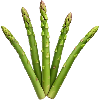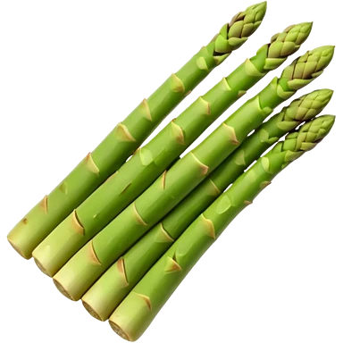 asparagus spears, bundled, green with tight pointed tips, stalks fade to pale at base, smooth surface, faint vertical ridges, natural color, stems aligned and slightly curved, no string or garnish, soft lighting, emoji scale emoji