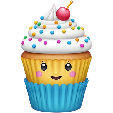 A 3D cartoon cupcake poster with bright colors, text and border design, flat layout, Memoji-style rendering. emoji