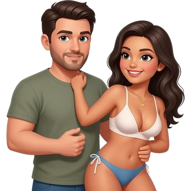Metis man giving having sex backshot to latina girl. We see her ass and her boobs falling. Frontview, we see their face emoji