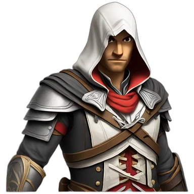 icon featuring Assasin's Creed in an iconic assassin's hood, standing tall against the backdrop of Florence. The design captures the essence of adventure, with intricate details of historical architecture and a sense of mystery. The character is poised, ready for action. transparent background. emoji