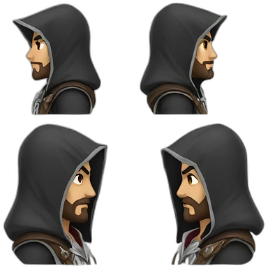 Assassin‘s Creed character. Hood covering the head and forehead. Only the nose and mouth is showing of the face. emoji
