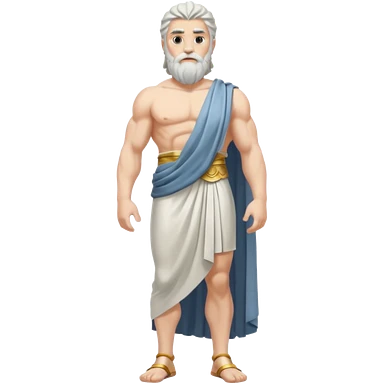 fullbody silverhair shirtless god ZEUS, white robe over shoulder, standing still emoji