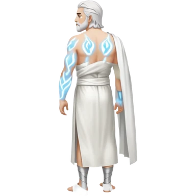 fullbody silverhair shirtless god ZEUS, white robe over shoulder, standing still backview emoji
