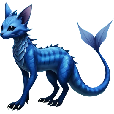 Epic complex abyssal fantasy swampy glorious detailed dark dusky gloomy deep gothic gloomy cobalt-blue-abyss-blue-black-greyish, realistic Fakémon-Sprigatito-Floragato-Meowscarada-Vaporeon-Salandit-Trico-Sergal-Serval-Vernid-creature (full body) with fins, shiny sparkly, iridescent emoji