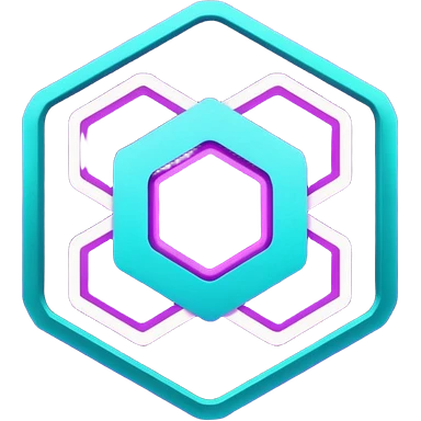 futuristic minimalistic glowing hexagon icon, neon purple and cyan glow, dark background, tech modern symbol, 1:1 aspect ratio, no face emoji
