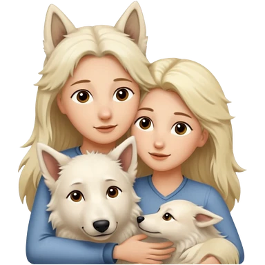 White Shepard short fur Brown eyes is huggin from a Long-haired blonde lady emoji