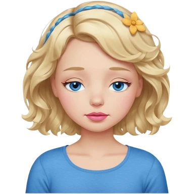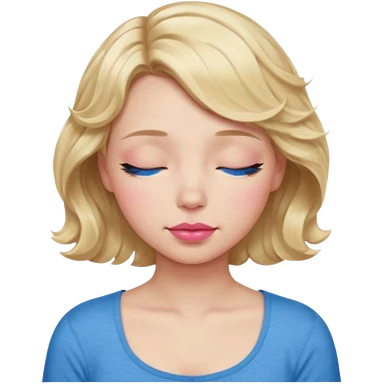 Girl Blonde short wavy hair, blue eyes, cute blue top, long lashes, pink lips, sleeping eyes closed emoji