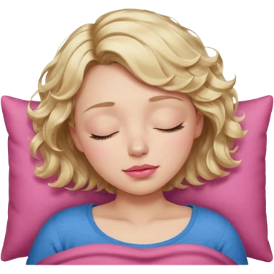 Girl Blonde short wavy hair, blue eyes, cute blue top, long lashes, pink lips, sleeping eyes closed, catching zzzz emoji