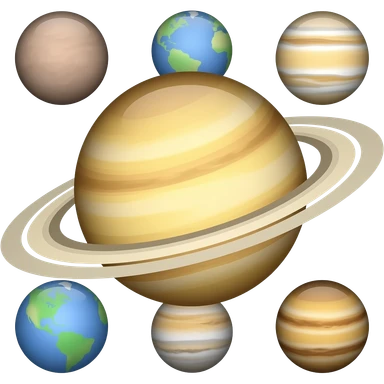 Cartoon cow face on one side of planet Saturn, with the planetary rings around the middle and tiny cow legs sticking out from the bottom emoji
