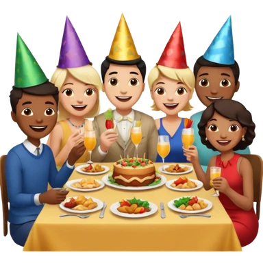 Family eating dinner and laughing together. Husband, wife, boy and girl (4 years old each) emoji