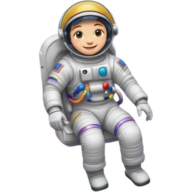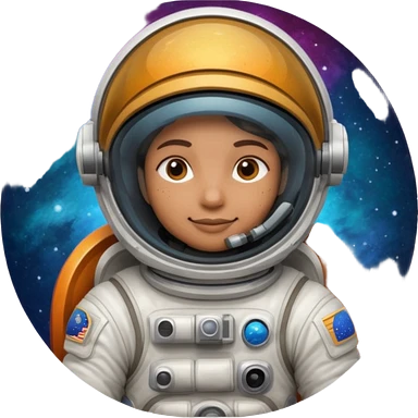 Astronaut floating in space, eating a juicy burger with cheese dripping, wearing a shiny helmet with a reflective visor, stars and Earth in the background, cartoonish style, vibrant colors, simple and fun emoji design. emoji