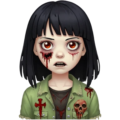 girl zombie with black long hair and bangs emoji