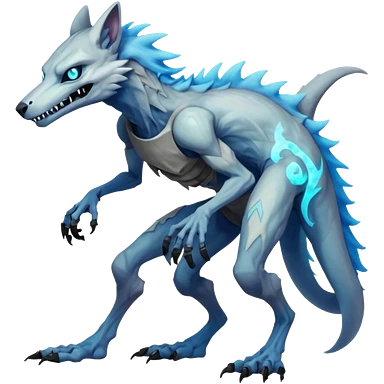 Futuristic ghoulish spectral foggy Zombie sergal-protogen-primagen-fusion-hybrid, full body emoji