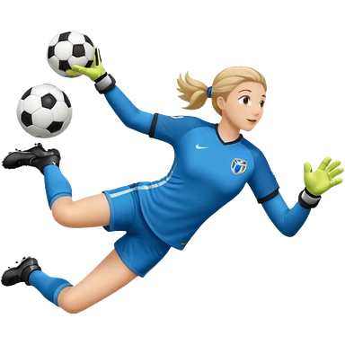 make a girl goalie diving through the air with one soccer ball in her hands emoji